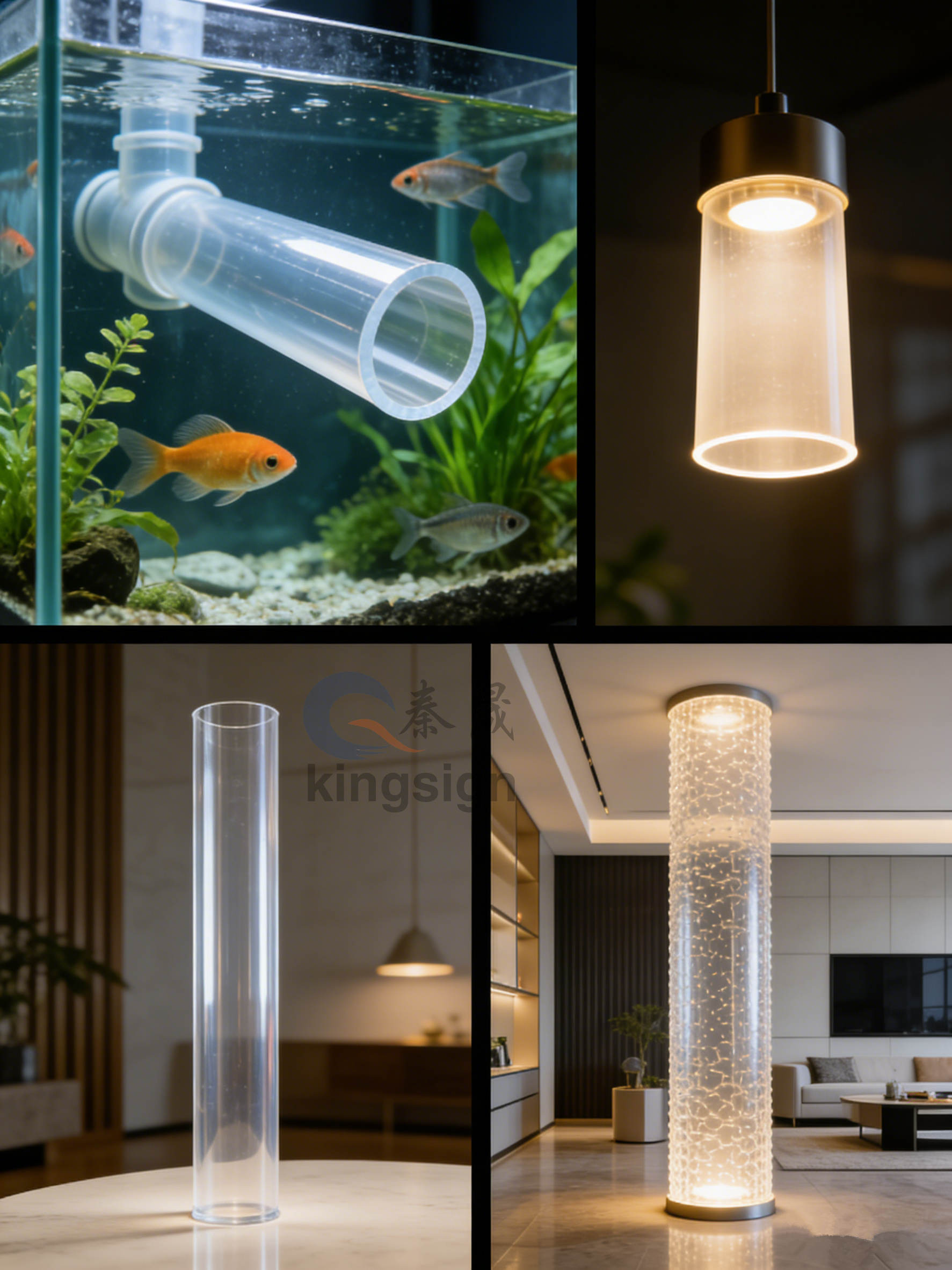 Kingsignεστιάζεται σε υψηλή διαύγεια, ομοιόμορφο πάχος τοιχώματοςακρυλικοί κύλινδροιπου προσφέρουν εξαιρετική διαπερατότητα φωτός, ισχυρή αντοχή στην κρούση και εξαιρετική αντοχή στις καιρικές συνθήκες. Χρησιμοποιούνται ευρέως σε συστήματα φωτισμού, αρχιτεκτονική διακόσμηση, ιατρικές συσκευές, επεξεργασία νερού, συστήματα ενυδρείων και βιομηχανικό εξοπλισμό, οι ακρυλικοί σωλήνες μας υποστηρίζουν τυπικά και προσαρμοσμένα μεγέθη, χρώματα και υπηρεσίες επεξεργασίας, όπως κοπή, διάτρηση, φλάντζα και συγκόλληση.